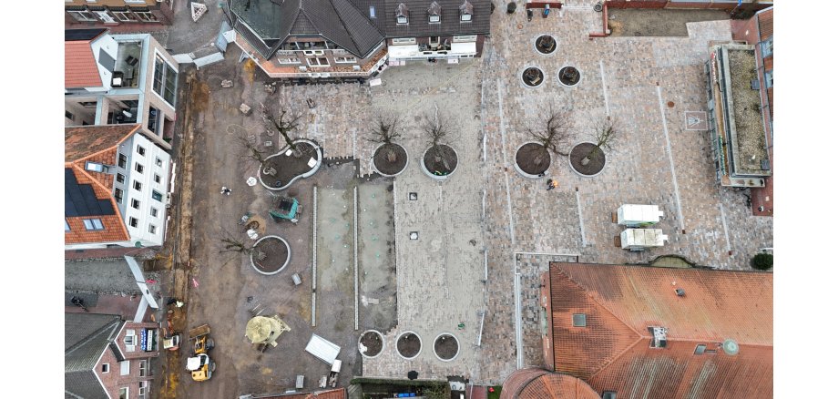 Das weitere Vorgehen sieht jetzt so aus, dass die Versorger in der Langen Straße im Februar ihre Arbeiten beenden, so dass wir mit dem Aufbau der Straße und der Pflasterung fortfahren können. Bei mehrtägigen Plusgraden kann das Fontänenfeld gepflastert werden. Parallel werden Arbeiten am Stadtmobiliar sowie den Bäumen und Grünbeeten aufgenommen sobald es die Witterungsbedingungen zulassen.