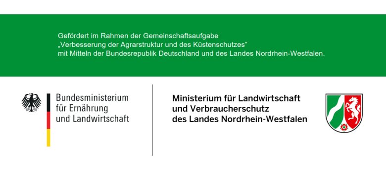 Gefördert wird das Ländliche Wegenetzkonzept im Rahmen der Gemeinschaftsaufgabe „Verbesserung der Agrarstruktur und des Küstenschutzes“ mit Mitteln der Bundesrepublik Deutschland und des Landes Nordrhein-Westfalen.