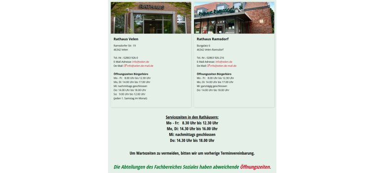 Die Rathäuser in Velen und Ramsdorf bleiben über die Osterfeiertage geschlossen.