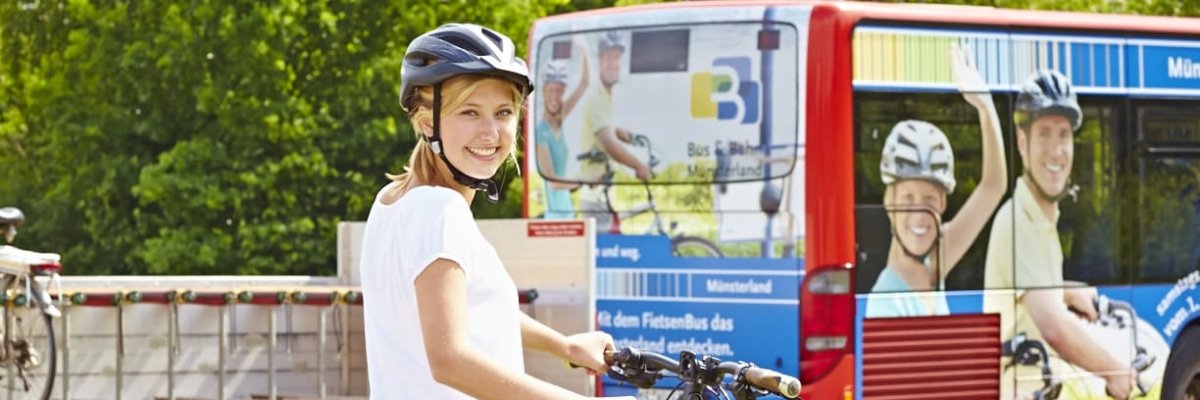 Den eigenen Aktionsradius erweitern, Gegenwind vermeiden – und das Fahrrad trotzdem immer dabei: Das ist die Idee des Fietsenbusses. Sie können Ihr Fahrrad jederzeit mitnehmen, wenn Platz ist. In der Fietsen-/FahrradBus-Saison vom 1. Mai bis 3. Oktober herrschen besonders gute Bedingungen: Egal wo du am Ende der Radtour landest, es gibt im Münsterland zahlreiche Fahrradbusse. Auf zahlreichen Linien im Münsterland führen die Busse an Wochenenden und Feiertagen Radanhänger für bis zu 16 Fahrräder mit. Durch die Fahrradbusse ergeben sich völlig neue Möglichkeiten.
