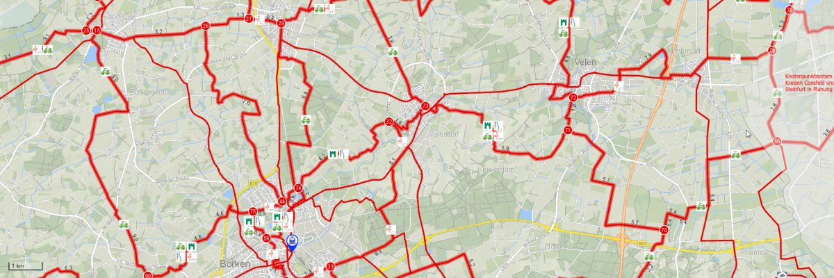 Das Knotenpunktnetz, bekannt aus den Niederlanden und Belgien, ermöglicht im Münsterland eine flexible Tourenplanung – und dies sogar über Länder- und Kreisgrenzen hinweg. Der Kreis Borken ist der erste Münsterland-Kreis, der im Frühjahr 2021 das Knotenpunktsystem eingeführt hat.