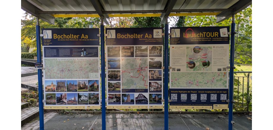 Eine eigene Tafel zur Lauschtour „Bocholter Aa“ ergänzt das Angebot. Sie lädt dazu ein, die Region auf einer spannenden Hörreise per App zu entdecken – mit interessanten Geschichten rund um Natur, Kultur und Geschichte entlang des Flusslaufs.