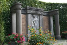 Das Ramsdorfer Ehrenmal zum Gedenken der Opfer der beiden Weltkriege stammt aus dem Jahr 1925. Einst erstreckte sich hier der alte Stadtgraben aus dem die Außenmauern der Burg hervor stiegen.