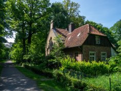 Das ehemalige Forsthaus im Tiergarten stammt im Kern aus dem 18. Jahrhundert, hat aber viele Veränderungen erlebt. Um 1910 war hier eine Fabrik für Tierfallen untergebracht. Der Velener Förster Wilhelm Stracke warb mit "humansten Fanggeräten". Später verlegte er die Fabrik auf Gut Roß, danach in die Fasanerie.