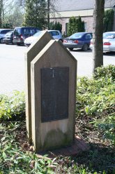 Das 5 Meter hohe Ehrenmal für die in den Weltkriegen GEfallenen und Vermissten aus Velen wurde 1980 eingeweiht. Der Entwurf in Form eines "Dreikreuz" stammt von dem Bildhauer und Friedlandpreisträger Prof. Fritz Theilmann (1902-1991). Ein 1927 an anderer Stelle errichtetes Ehrendenkmal wurde 1977 wegen Baufälligkeit abgerissen.